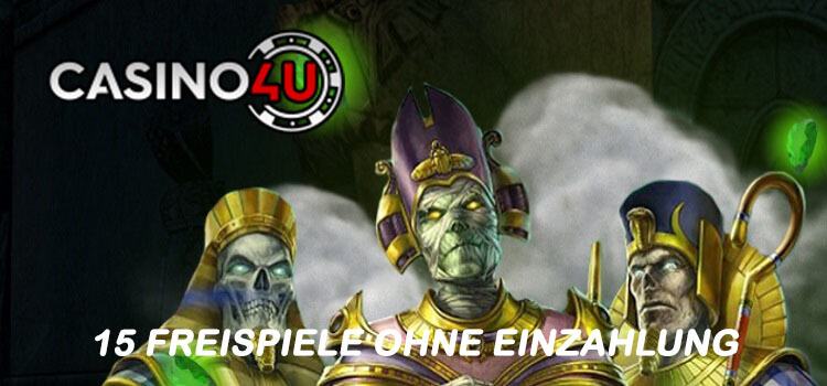 Im Casino4u könnt Ihr von einem ganz speziellen Bonusangebot profitieren, und das komplett ohne Einzahlung und somit ohne eigenes Risiko. Registriert Euch jetzt und erhaltet 15 Freispiele ohne Einzahlungder Extraklasse. Denn mit diesen Freispielen könnt Ihr direkt Echtgeld gewinnen. Wollt Ihr weitermachen, dann gibt es obendrauf für die erste Einzahlung noch einen 100% Bonus plus 100 Freispiele.